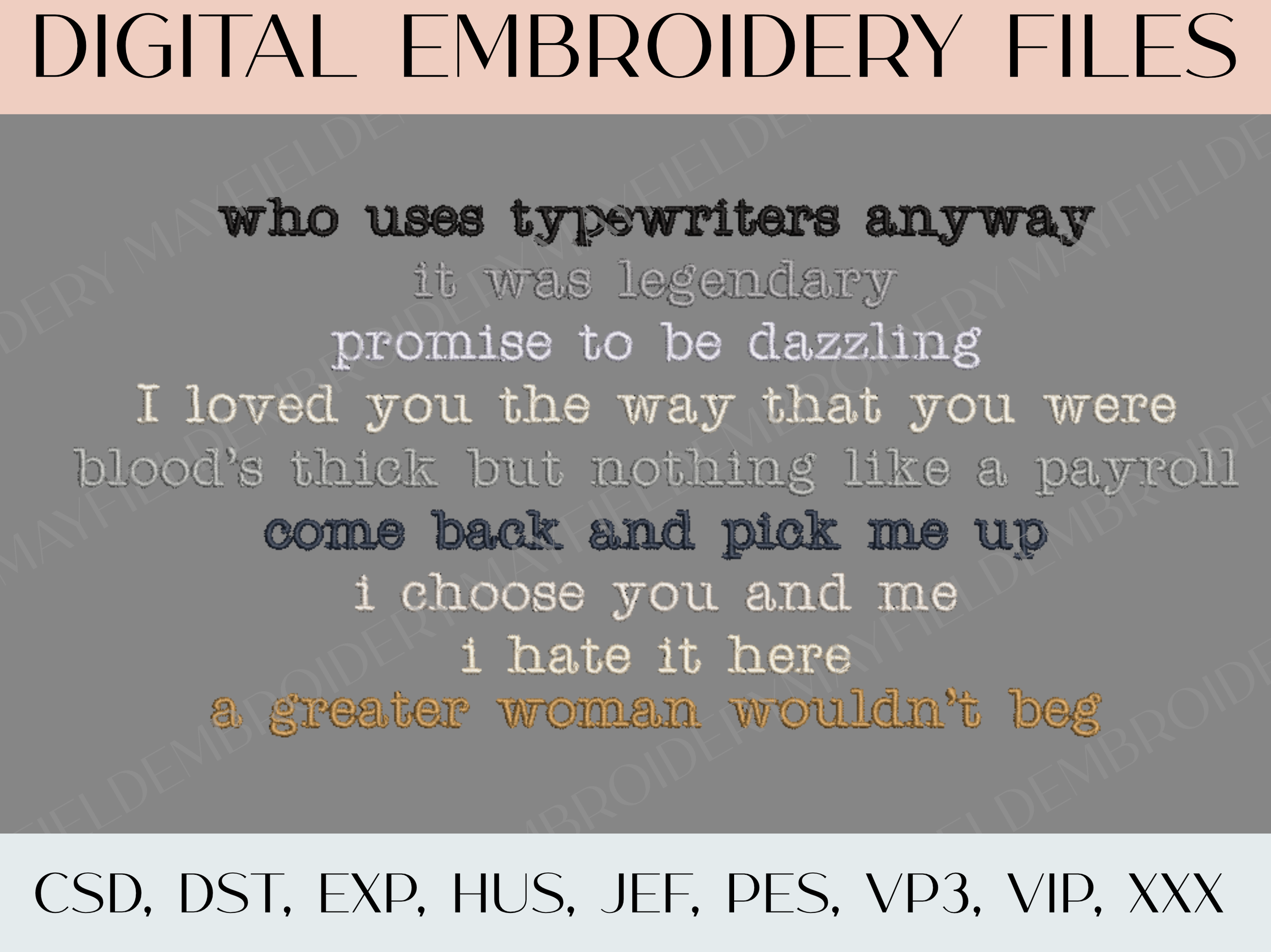 1989 Taylor's Version Embroidery File Bundle | Lyric & Icon Set | Instant Download | Machine Embroidery Patterns