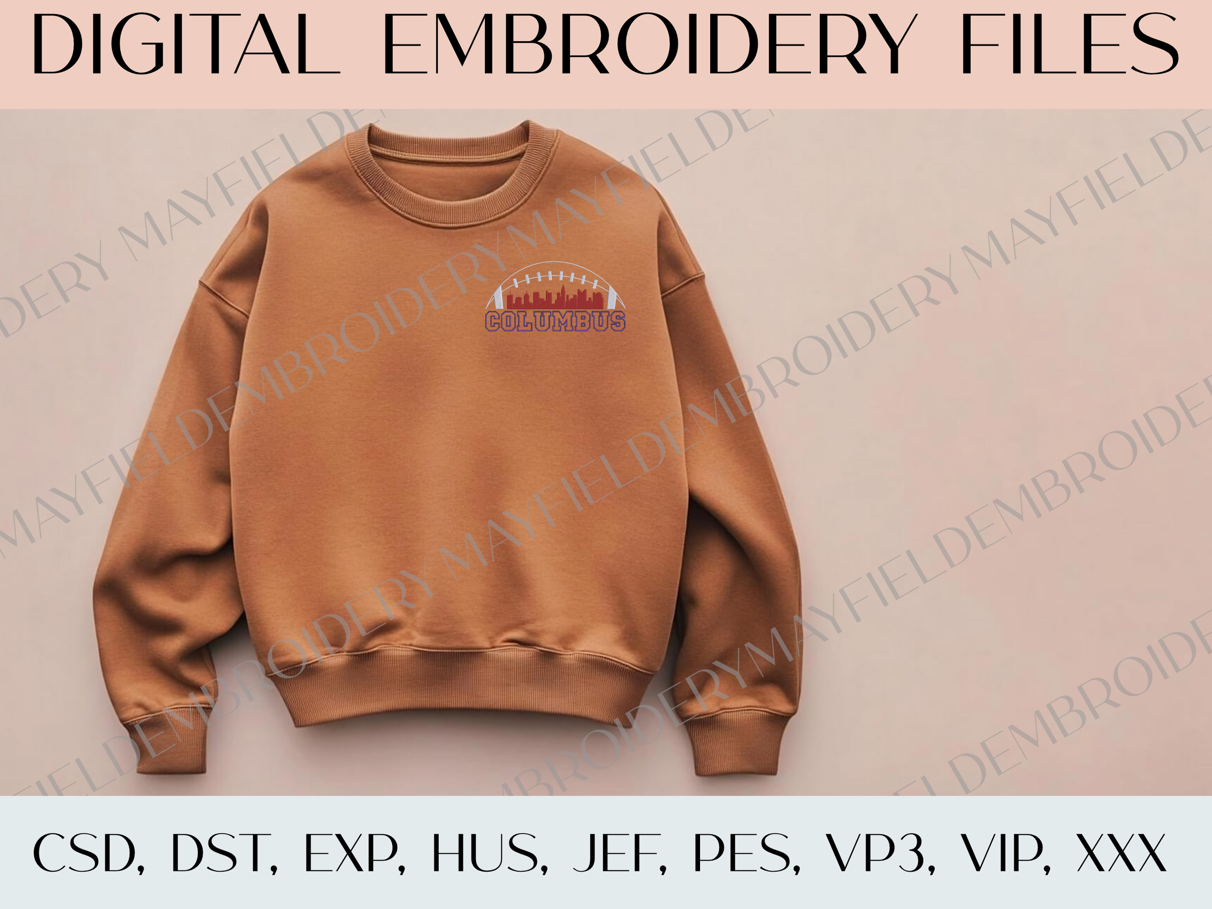 Detroit Football Skyline - Embroidery Digital File ONLY (3 Sizes 10x5.5, 6.8x3.65, 3.9x2)