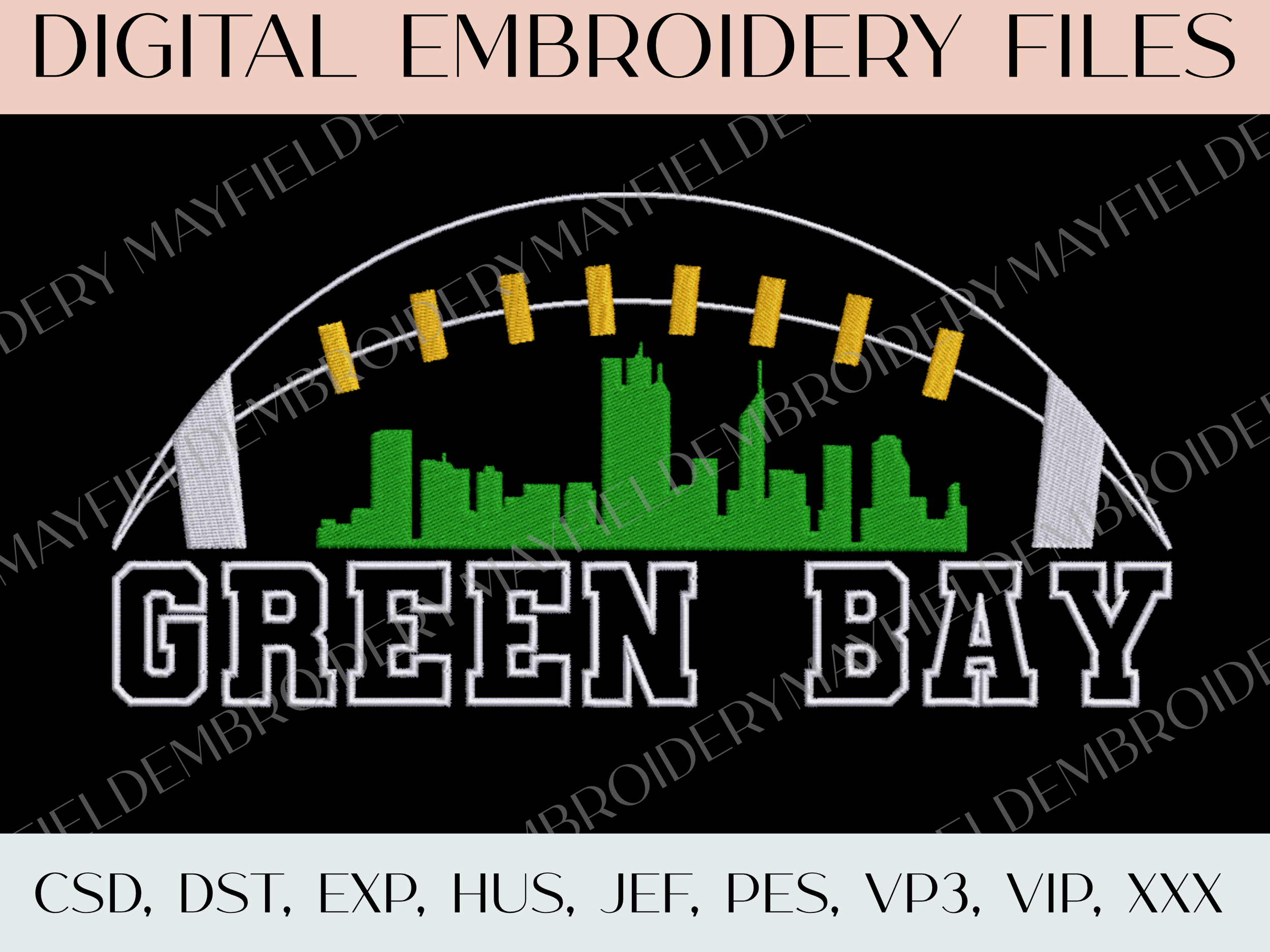 Green Bay Football Skyline - Embroidery Digital Files ONLY | 3 Sizes
